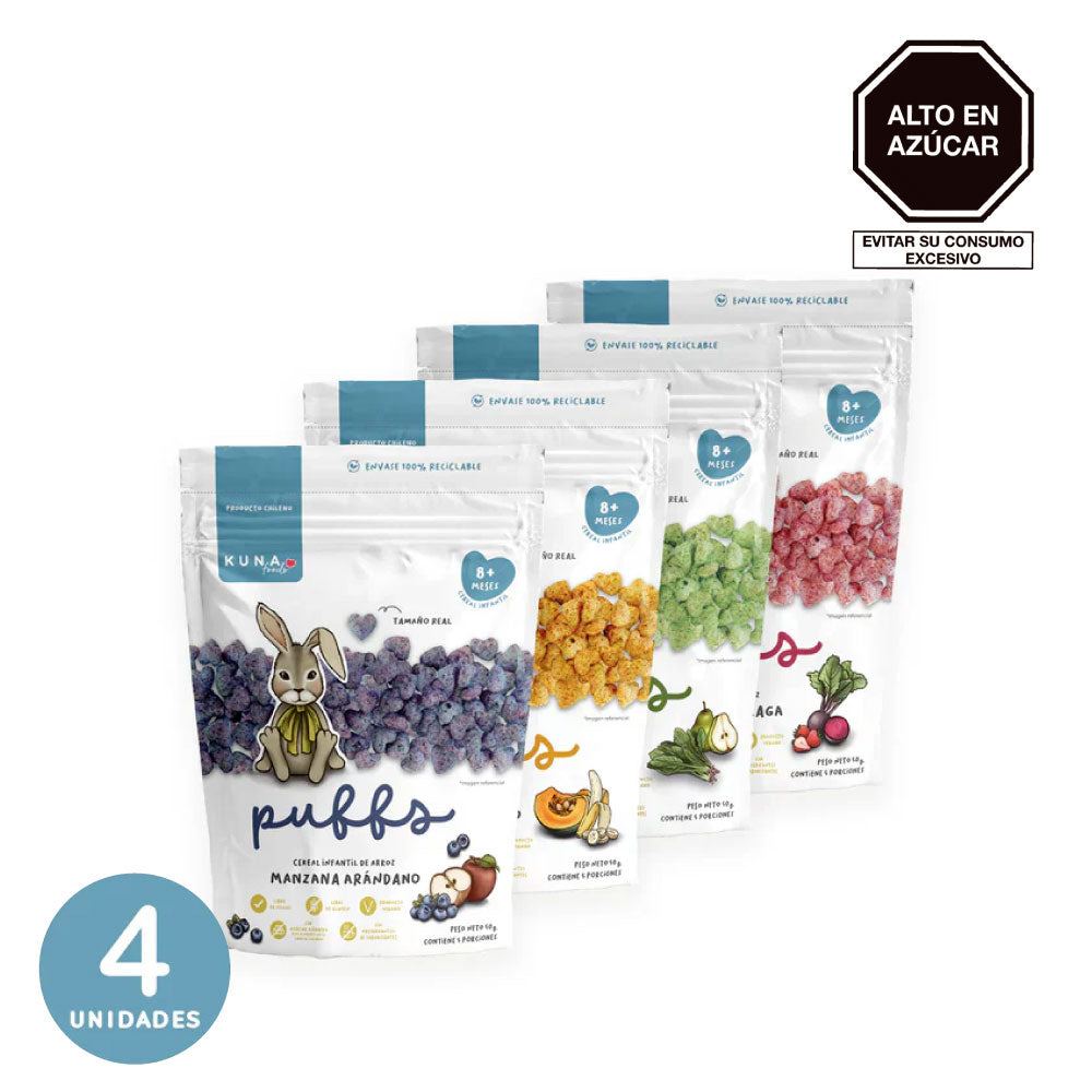 1 Snack saludable a base de harina de arroz, jugo concentrado de manzana y harina de arándanos. Apto para consumo a partir de los 8 meses de edad.